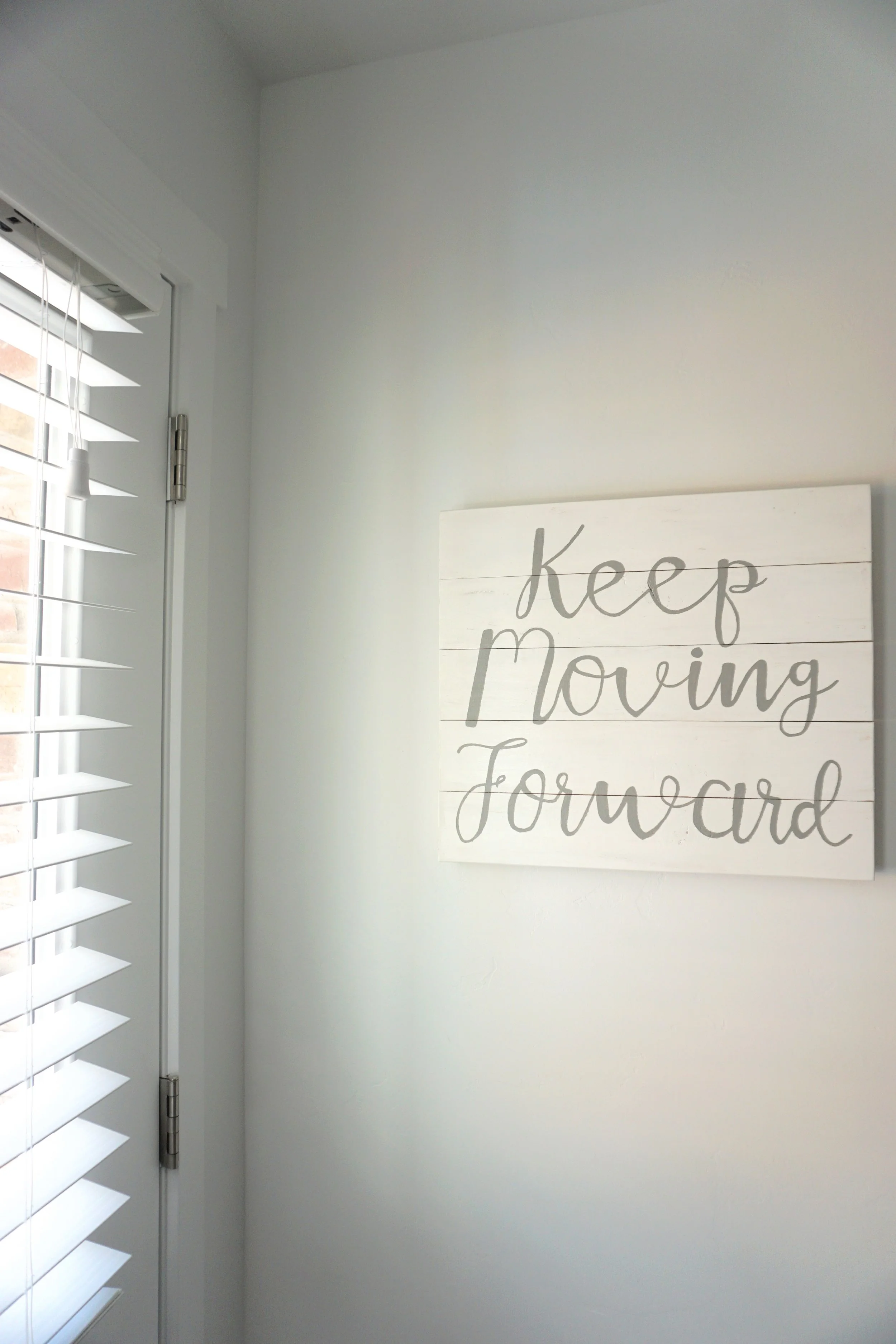 Brandon and I love the movie Meet the Robinsons. The whole time we have been married, we have always quoted it, saying "Keep Moving Foward," but have been using the phrase much more since we lost Carter. So much, in fact, that the sweetest soul offered to paint a little sign for us, and now our mantra greets us each time we enter and leave our home.